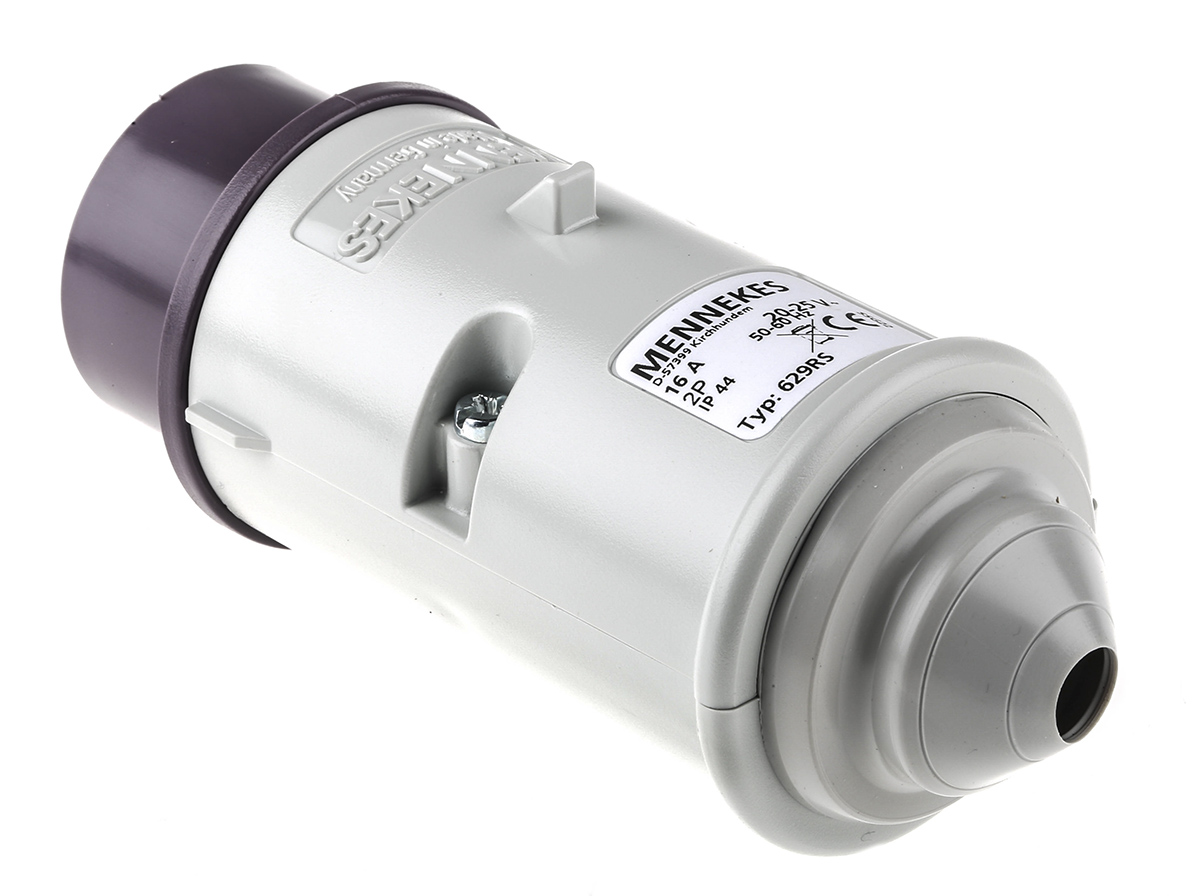 Low Voltage Connectors From Mennekes these low voltage connectors feature a unique connection system that ensures easy and reliable coupling between corresponding plugs and sockets. The cable mounted socket features a hinged socket protector, and both the plug and the socket are rated to IP44, meaning they are well protected against water splashes. The low voltage sockets are also available as a panel mounted version. Standards EN60309-2:1992 Mennekes Low Voltage High quality, high performance yet competitively priced industrial plugs and sockets having a rated voltage of 20-25V a.c. 50-60Hz and a current rating of 16A. Conforming to the requirements of EN60309-2:1992/BS4343:1992 for use with power tools and portable hand lamps where operating conditions demand that extra low voltage operated equipment is used.,All accessories are load breaking and manufactured from polyamide with excellent insulating properties and resistant to petrol, oil and sea water.,Specifiers can easily discriminate between low voltages using the prescribed range of minor keyways.,Where it is thought necessary to run a safety earth conductor care must be taken to ensure that all low voltage accessories in the industrial unit are wired in accordance to house specification.