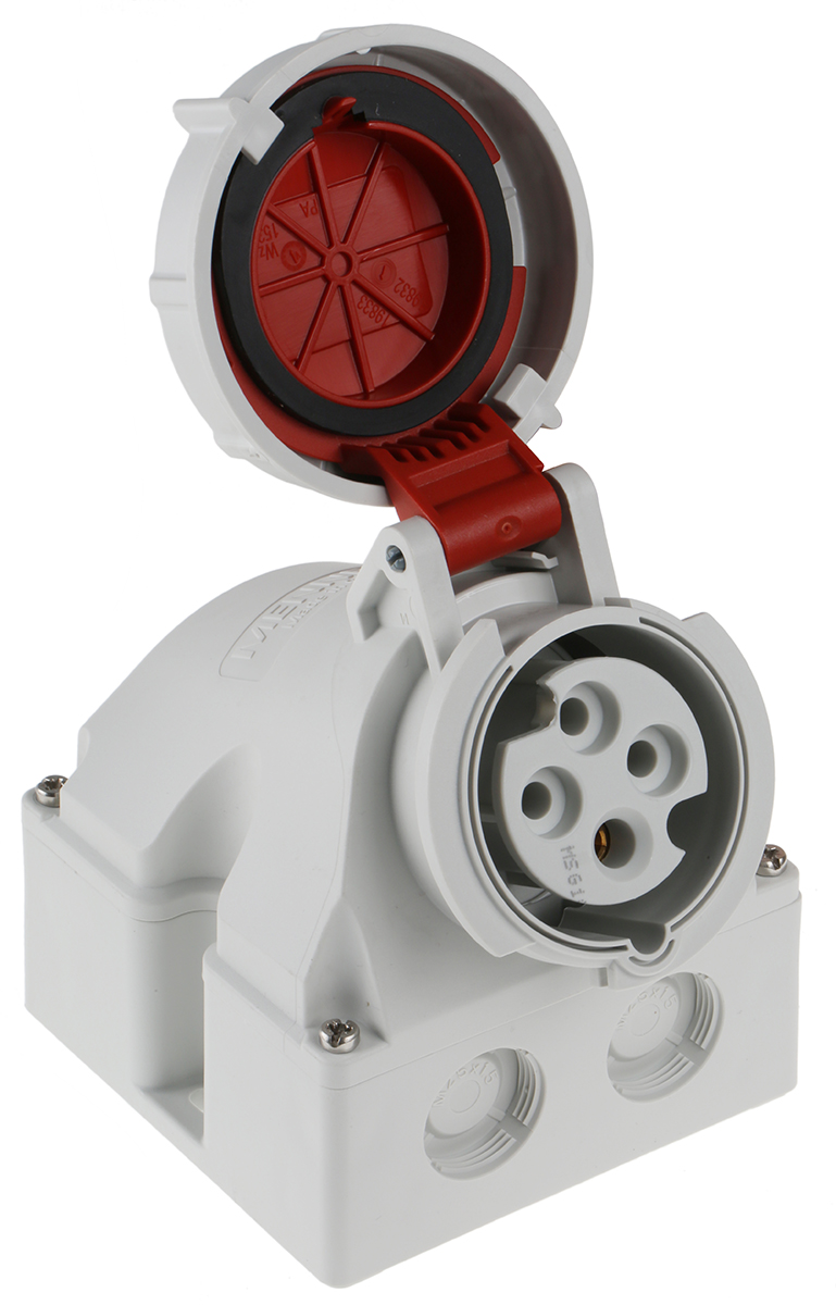 This is IP67 Red Wall Mount 4P Industrial Power Socket Rated At 16A 400 V manufactured by Mennekes. The manufacturer part number is 9322RS. The product has a current rating of 16a. The product is available in wall mount configuration. It is IP rated with ip67. In addition, female is the available "Gender" of the product. It has a decent red colour. Moreover, the product has a nominal 400 v voltage rating. While the pole has 4p format. It comprises a socket. Whereas, the minimum operating temperature of the product is -25°c. It allows screw terminal termination method. The cross section area of the cable includes 1.5 → 4mm². It has a maximum operating temperature of +55°c. It has 25 ° body orientation. It has low voltage no .