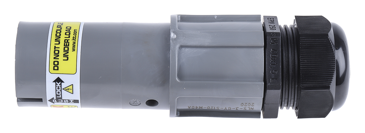 This is Veam Powerlock Series Cable Mount Industrial Power Plug Rated At 400A 1 kV ac manufactured by ITT Cannon. The manufacturer part number is NLS-3-GY-S120-M40A. The product has a current rating of 400a. The product is available in cable mount configuration. Moreover, the product has a nominal 1.0 kv voltage rating. The product veam powerlock, is a highly preferred choice for users. It has a decent grey colour. It comprises a plug. Whereas, the minimum operating temperature of the product is -30. It has a maximum operating temperature of +125°c. It has straight body orientation.