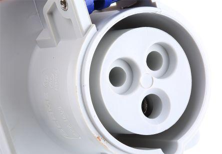 This is IP44 Blue Panel Mount 2P+E Industrial Power Socket Rated At 16A 200 → 250 V manufactured by RS Pro. The manufacturer part number is 464-1627. The product has a current rating of 16.0a. The product is available in panel mount configuration. It is IP rated with ip44. In addition, female is the available "Gender" of the product. It has a decent blue colour. Moreover, the product has a nominal 230.0 v voltage rating. While the pole has 2p+e format. It comprises a socket. It allows screw termination method. It has straight body orientation.