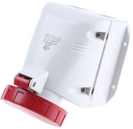 This is IP66 IP67 Red Surface Mount 3P+E Industrial Power Socket Rated At 32A 380 → 415 V manufactured by RS Pro. The manufacturer part number is 781-2721. The product has a current rating of 32.0a. The product is available in wall mount configuration. It is IP rated with ip66, ip67. In addition, female is the available "Gender" of the product. It has a decent red colour. Moreover, the product has a nominal 415.0 v voltage rating. While the pole has 3p+e format. It comprises a socket. Whereas, the minimum operating temperature of the product is -25. It allows screw termination method. It has a maximum operating temperature of +40°c.