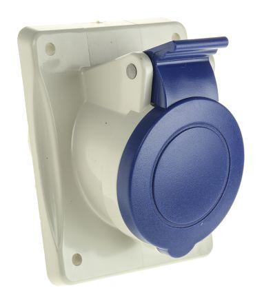 This is IP44 Blue Flush Mount 2P+E Heavy Duty Power Connector Socket Rated At 16A 200 → 250 V manufactured by RS Pro. The manufacturer part number is 795-9849. The product has a current rating of 16.0a. The product is available in panel mount configuration. It is IP rated with ip44. In addition, female is the available "Gender" of the product. It has a decent blue colour. Moreover, the product has a nominal 230.0 v voltage rating. While the pole has 2p+e format. It comprises a socket. It allows screw termination method. It has straight body orientation.