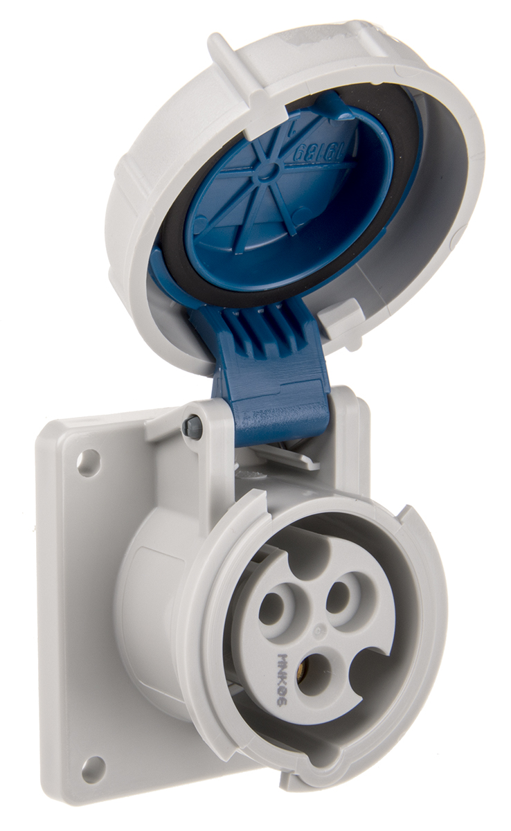 This is IP67 Blue Panel Mount 3P Industrial Power Socket Rated At 16A 230 V manufactured by Mennekes. The manufacturer part number is 218A. The product has a current rating of 16a. The product is available in panel mount configuration. It is IP rated with ip67. In addition, female is the available "Gender" of the product. It has a decent blue colour. Moreover, the product has a nominal 230 v voltage rating. While the pole has 3p format. It comprises a socket. Whereas, the minimum operating temperature of the product is -25°c. It allows screw terminal termination method. The cross section area of the cable includes 1.5 → 4mm². It has a maximum operating temperature of +55°c. It has straight body orientation. It has low voltage no .