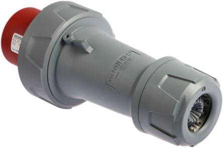 This is PowerTOP Series IP67 Red Cable Mount 3P+E Industrial Power Plug Rated At 63A 400 V manufactured by Mennekes. The manufacturer part number is 3308. The product has a current rating of 63a. The product is available in cable mount configuration. It is IP rated with ip67. In addition, male is the available "Gender" of the product. It has a decent red colour. Moreover, the product has a nominal 415 v voltage rating. While the pole has 3p+e format. It comprises a plug. Whereas, the minimum operating temperature of the product is -25°c. The product powertop plus, is a highly preferred choice for users. It has a maximum operating temperature of +40°c. It has straight body orientation.