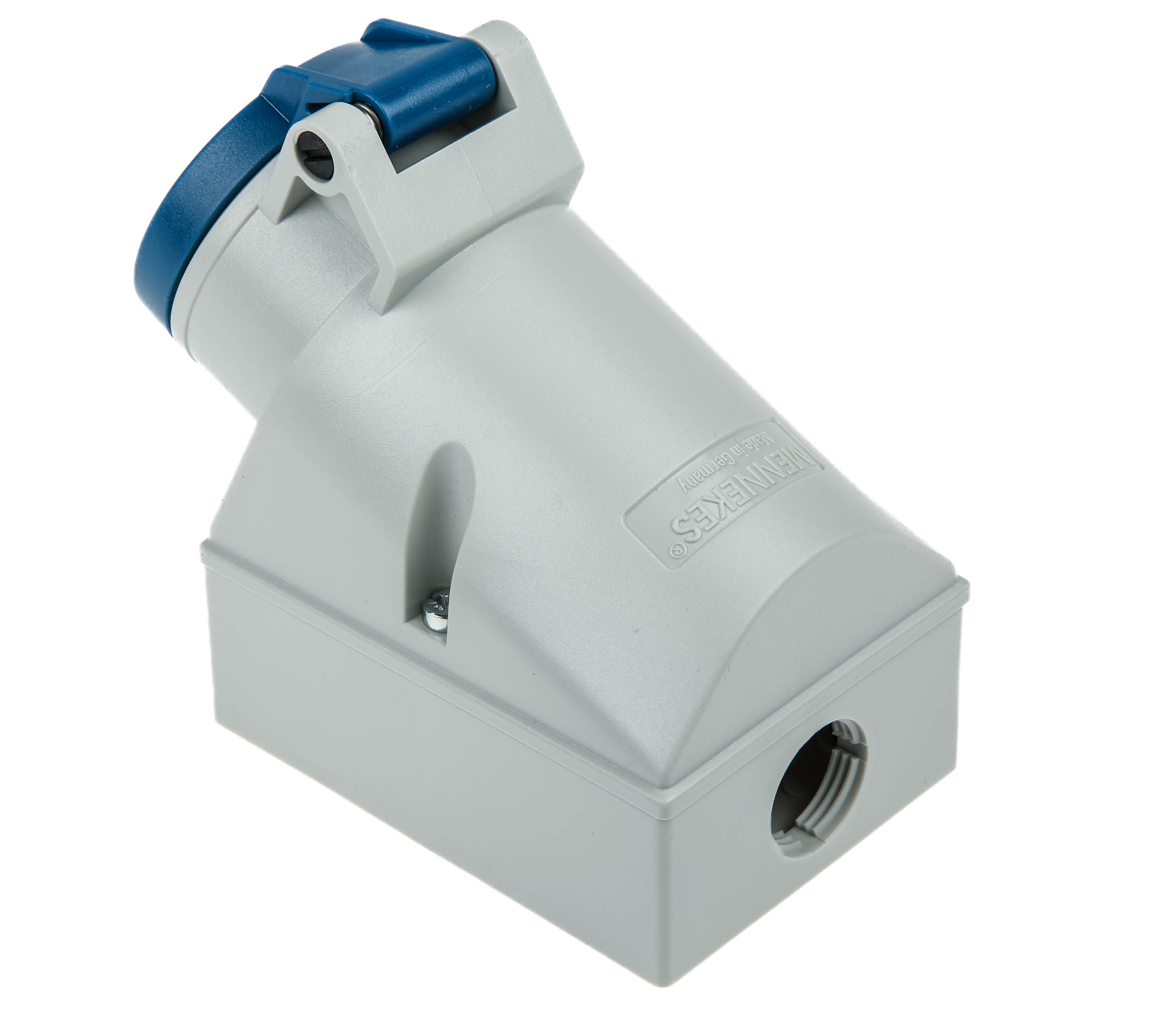 This is IP44 Blue Wall Mount 3P Right Angle Industrial Power Socket Rated At 16A 230 V manufactured by Mennekes. The manufacturer part number is 101. The product has a current rating of 16a. The product is available in wall mount configuration. It is IP rated with ip44. In addition, female is the available "Gender" of the product. It has a decent blue colour. Moreover, the product has a nominal 230 v voltage rating. While the pole has 3p format. It comprises a socket. It allows screw down termination method. It has right angle body orientation.