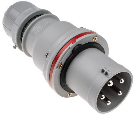 This is IP44 Red Cable Mount 3P+N+E Industrial Power Plug Rated At 63A 415 V manufactured by RS Pro. The manufacturer part number is 125-4438. The product has a current rating of 63.0a. The product is available in cable mount configuration. It is IP rated with ip44. In addition, male is the available "Gender" of the product. It has a decent red colour. Moreover, the product has a nominal 415.0 v voltage rating. While the pole has 3p+n+e format. It comprises a plug. It has straight body orientation.