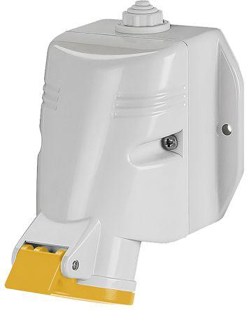 This is IP44 Yellow Surface Mount 2P+E Industrial Power Socket Rated At 32A 130 V manufactured by RS Pro. The manufacturer part number is 125-4447. The product has a current rating of 32.0a. The product is available in wall mount configuration. It is IP rated with ip44. In addition, female is the available "Gender" of the product. It has a decent yellow colour. Moreover, the product has a nominal 110.0 v voltage rating. While the pole has 2p+e format. It comprises a socket. It has straight body orientation.