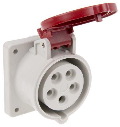 This is IP44 Red Panel Mount 3P+N+E Industrial Power Socket Rated At 16A 346 → 415 V manufactured by RS Pro. The manufacturer part number is 464-1655. The product has a current rating of 16.0a. The product is available in panel mount configuration. It is IP rated with ip44. In addition, female is the available "Gender" of the product. It has a decent red colour. Moreover, the product has a nominal 415.0 v voltage rating. While the pole has 3p+n+e format. It comprises a socket. It allows screw termination method. It has straight body orientation.