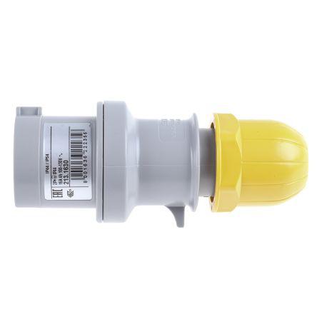 This is IP44 Yellow Cable Mount 2P+E Industrial Power Plug Rated At 16A 100 → 130 V manufactured by RS Pro. The manufacturer part number is 724-9079. The product has a current rating of 16.0a. The product is available in cable mount configuration. It is IP rated with ip44. In addition, male is the available "Gender" of the product. It has a decent yellow colour. Moreover, the product has a nominal 110.0 v voltage rating. While the pole has 2p+e format. It comprises a plug. It allows screw termination method. The cross section area of the cable includes 2.5mm². It has straight body orientation.