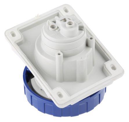This is IP66 IP67 Blue Flush Mount 2P+E Heavy Duty Power Connector Socket Rated At 16A 200 → 250 V manufactured by RS Pro. The manufacturer part number is 795-9873. The product has a current rating of 16.0a. The product is available in panel mount configuration. It is IP rated with ip66, ip67. In addition, female is the available "Gender" of the product. It has a decent blue colour. Moreover, the product has a nominal 230.0 v voltage rating. While the pole has 2p+e format. It comprises a socket. It allows screw termination method. It has straight body orientation.