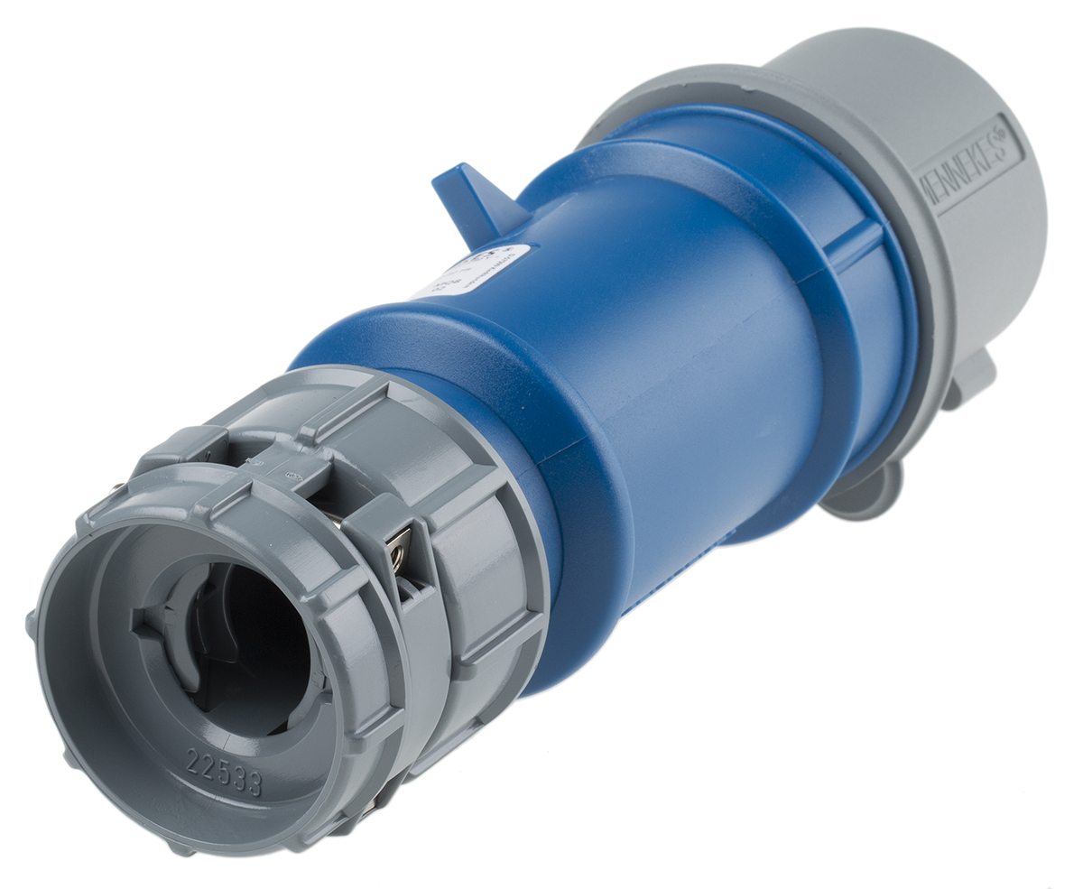 This is PowerTOP Series IP44 Blue Cable Mount 3P Industrial Power Plug Rated At 32A 230 V manufactured by Mennekes. The manufacturer part number is 3943. The product has a current rating of 32a. The product is available in cable mount configuration. It is IP rated with ip44. In addition, male is the available "Gender" of the product. It has a decent blue colour. Moreover, the product has a nominal 230 v voltage rating. While the pole has 3p format. It allows screw terminal termination method. It comprises a plug. Whereas, the minimum operating temperature of the product is -25°c. The product powertop, is a highly preferred choice for users. The cross section area of the cable includes 2.5 → 6mm². It has a maximum operating temperature of +55°c. It has straight body orientation. It has low voltage no .