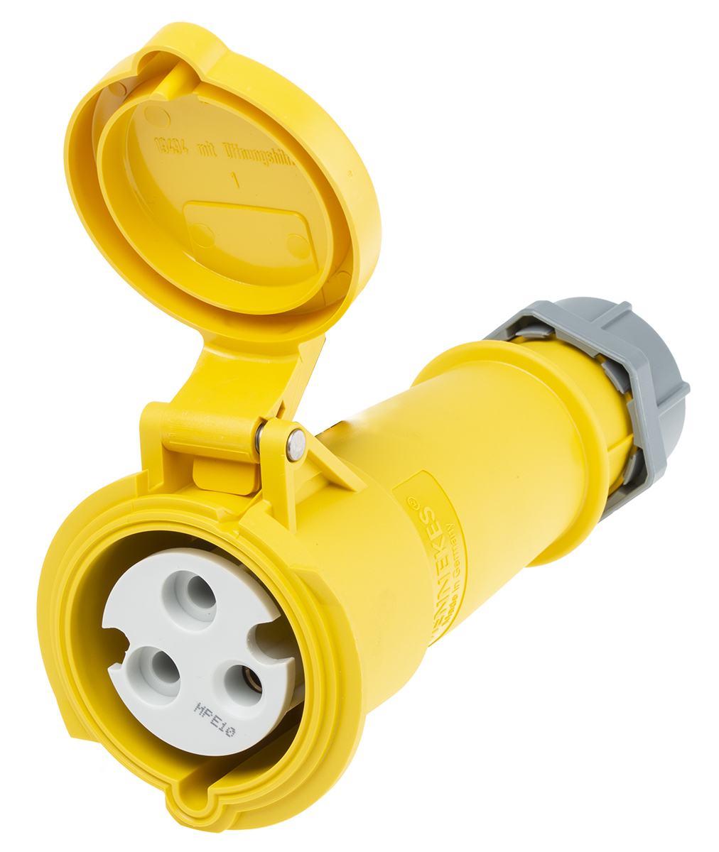 This is AM-TOP Series IP44 Yellow Cable Mount 2P+E Industrial Power Socket Rated At 32A 110 V manufactured by Mennekes. The manufacturer part number is 521. The product has a current rating of 32a. The product is available in cable mount configuration. It is IP rated with ip44. In addition, female is the available "Gender" of the product. It has a decent yellow colour. Moreover, the product has a nominal 110 v voltage rating. While the pole has 3p format. It allows screw terminal termination method. It comprises a socket. Whereas, the minimum operating temperature of the product is -25°c. The product am-top, is a highly preferred choice for users. The cross section area of the cable includes 2.5 → 6mm². It has a maximum operating temperature of +55°c. It has straight body orientation. It has low voltage no .
