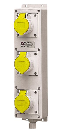 This is 16A Yellow 3 Pole 3 Gang Industrial Socket 110V IP44 manufactured by Mennekes. The manufacturer part number is 96227. The product has a current rating of 16a. The product is available in wall mount configuration. It is IP rated with ip44. It has a decent yellow colour. Moreover, the product has a nominal 110 v voltage rating. While the pole has 3p format. It comprises a socket. It allows screw termination method.