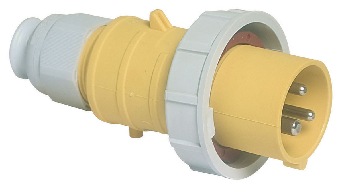 This is IP67 Yellow Wall Mount 2P+E Industrial Power Plug Rated At 32A 110 V manufactured by Bals. The manufacturer part number is 21408. The product has a current rating of 32a. The product is available in cable mount configuration. It is IP rated with ip67. In addition, male is the available "Gender" of the product. It has a decent yellow colour. Moreover, the product has a nominal 110 v voltage rating. While the pole has 2p + e format. It comprises a plug. It allows quick connect termination method. The cross section area of the cable includes 2.5mm². It has straight body orientation.