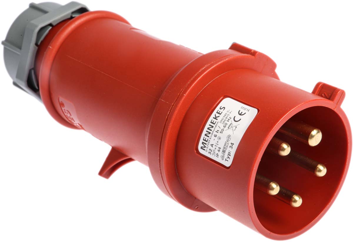 This is StarTOP Series IP44 Red Cable Mount 5P Industrial Power Plug Rated At 32A 400 V manufactured by Mennekes. The manufacturer part number is 34. The product has a current rating of 32a. The product is available in cable mount configuration. It is IP rated with ip44. In addition, male is the available "Gender" of the product. It has a decent red colour. Moreover, the product has a nominal 400 v voltage rating. While the pole has 3p + n + e format. It allows screwless termination method. It comprises a plug. Whereas, the minimum operating temperature of the product is -25°c. The product startop, is a highly preferred choice for users. The cross section area of the cable includes 2.5 → 6mm². It has a maximum operating temperature of +55°c. It has straight body orientation. It has low voltage no .