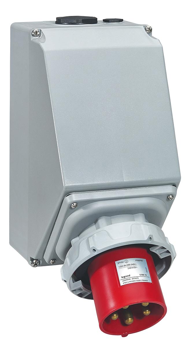 This is IP67 Red Surface Mount 3P+E Right Angle Industrial Power Socket Rated At 63A 380 → 415 V ac manufactured by Legrand. The manufacturer part number is 5 555 18. The product has a current rating of 63a. The product is available in wall mount configuration. It is IP rated with ip67. In addition, female is the available "Gender" of the product. It has a decent red colour. Moreover, the product has a nominal 415.0 v voltage rating. While the pole has 3p+e format. It comprises a socket. Whereas, the minimum operating temperature of the product is -25. It allows screw termination method. It has a maximum operating temperature of +40°c. It has right angle body orientation.