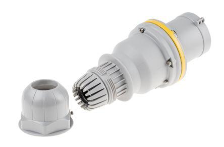 This is IP44 Yellow Cable Mount 2P+E Industrial Power Plug Rated At 63A 130 V manufactured by RS Pro. The manufacturer part number is 125-4435. The product has a current rating of 63.0a. The product is available in cable mount configuration. It is IP rated with ip44. In addition, male is the available "Gender" of the product. It has a decent yellow colour. Moreover, the product has a nominal 110.0 v voltage rating. While the pole has 2p+e format. It comprises a plug. It has straight body orientation.