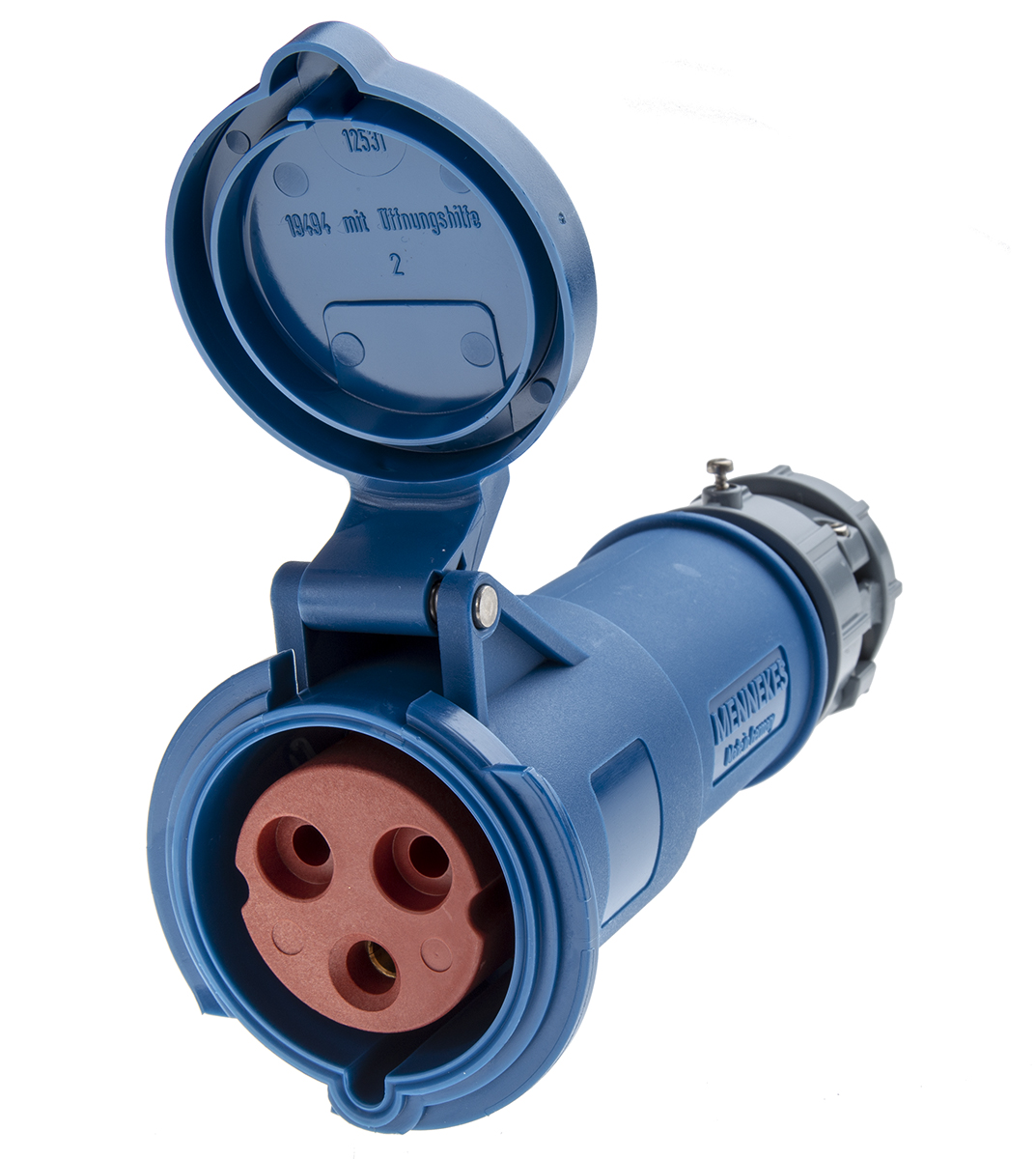 This is PowerTOP Series IP44 Blue Cable Mount 3P Industrial Power Socket Rated At 32A 230 V manufactured by Mennekes. The manufacturer part number is 3966. The product has a current rating of 32a. The product is available in cable mount configuration. It is IP rated with ip44. In addition, female is the available "Gender" of the product. It has a decent blue colour. Moreover, the product has a nominal 230 v voltage rating. While the pole has 3p format. It allows screw terminal termination method. It comprises a socket. Whereas, the minimum operating temperature of the product is -25°c. The product powertop, is a highly preferred choice for users. The cross section area of the cable includes 2.5 → 6mm². It has a maximum operating temperature of +55°c. It has straight body orientation. It has low voltage no .