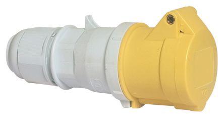 This is IP44 Yellow Cable Mount 2P+E Industrial Power Rated At 32A 110 V manufactured by Bals. The manufacturer part number is 3137. The product has a current rating of 32.0a. The product is available in cable mount configuration. It is IP rated with ip44. It has a decent yellow colour. Moreover, the product has a nominal 110.0 v voltage rating. While the pole has 2p+e format. It comprises a socket. It allows quick connect termination method. The cross section area of the cable includes 6.0mm². It has straight body orientation.
