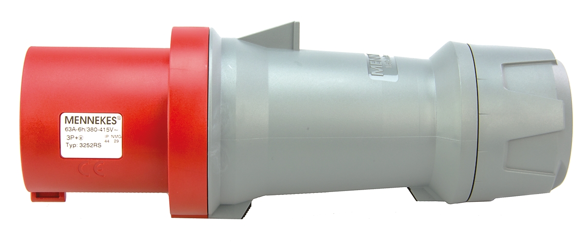 This is Mennekes PowerTOP Series IP44 Red Cable Mount 3P+E Industrial Power Plug Rated At 63A 415 V manufactured by MENNEKES. The manufacturer part number is 3252RS. The product has a current rating of 63a. The product is available in cable mount configuration. It is IP rated with ip44. In addition, male is the available "Gender" of the product. It has a decent red colour. Moreover, the product has a nominal 400 v voltage rating. While the pole has 3p + e format. It allows screw terminal termination method. It comprises a plug. Whereas, the minimum operating temperature of the product is -25°c. The product powertop, is a highly preferred choice for users. The cross section area of the cable includes 6 → 16mm². It has a maximum operating temperature of +40°c. It has straight body orientation. It has low voltage no .