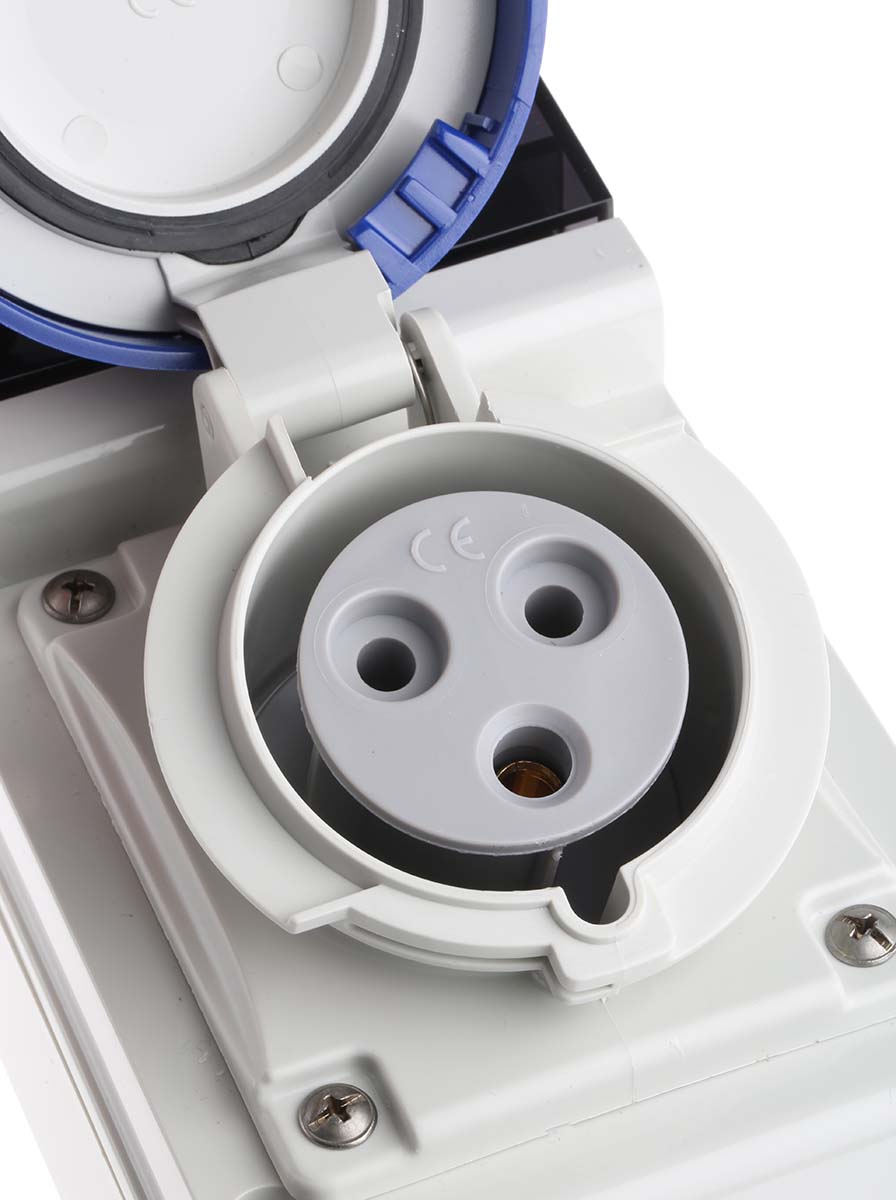 This is IP67 Blue Wall Mount 2P+E Industrial Power Socket Rated At 32.0A 230.0 V manufactured by Scame. The manufacturer part number is 632.3213-RW. The product has a current rating of 32a. The product is available in wall mount configuration. It is IP rated with ip67. In addition, female is the available "Gender" of the product. It has a decent blue colour. Moreover, the product has a nominal 230 v voltage rating. While the pole has 2p + e format. It comprises a socket. It has straight body orientation.