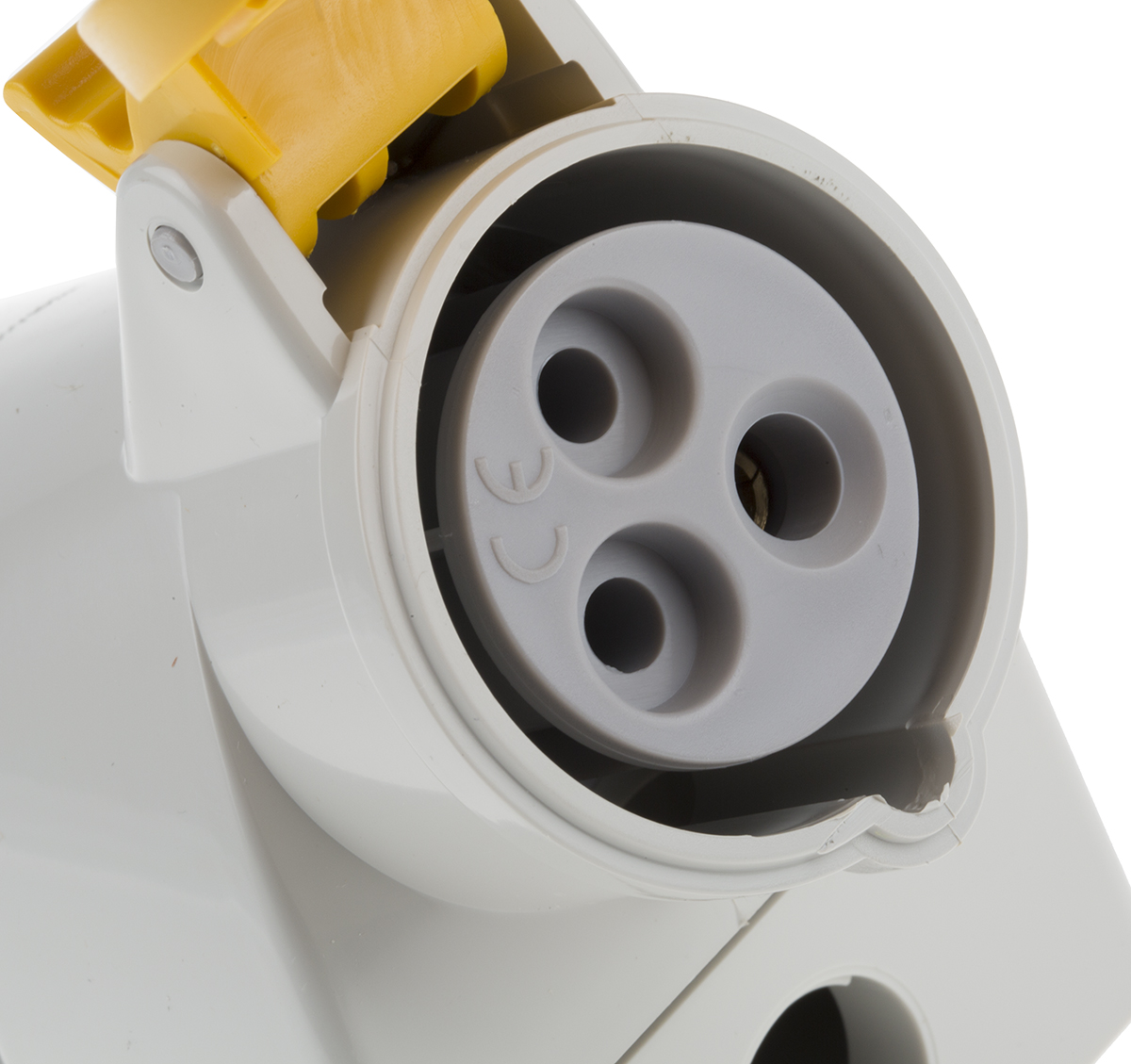 This is IP44 Yellow Wall Mount 2P+E Industrial Power Socket Rated At 16.0A 110.0 V manufactured by Scame. The manufacturer part number is 513.1650T. The product has a current rating of 16a. The product is available in wall mount configuration. It is IP rated with ip44. In addition, female is the available "Gender" of the product. It has a decent yellow colour. Moreover, the product has a nominal 110 v voltage rating. While the pole has 2p + e format. It comprises a socket. It has straight body orientation.