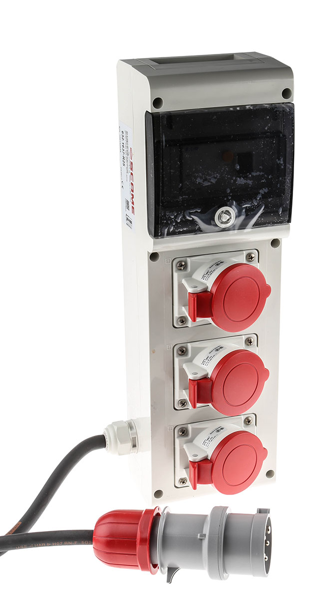 This is Block 3 IP44 Red Wall Mount 3P+N+E RCD Industrial Power Connector Socket Rated At 16.0A 415.0 V manufactured by Scame. The manufacturer part number is 632.1637-R. The product has a current rating of 16a. The product is available in wall mount configuration. It is IP rated with ip44. In addition, female is the available "Gender" of the product. It has a decent red colour. Moreover, the product has a nominal 415 v voltage rating. While the pole has 3p + n + e format. It allows pre-wired termination method. It comprises a socket. The product block 3, is a highly preferred choice for users.