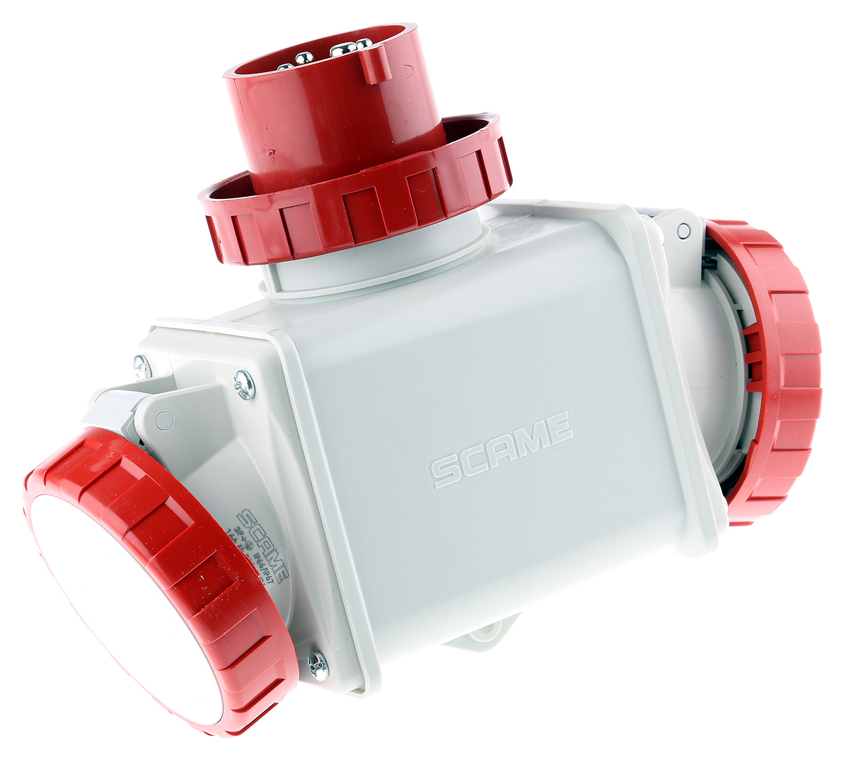 This is IP66 Red Industrial Power Connector Adapter Rated At 16.0A 415.0 V manufactured by Scame. The manufacturer part number is 601.1626. The product has a current rating of 16a. Moreover, the product has a nominal 415 v voltage rating. It has a decent red colour. It is IP rated with ip66. While the pole has 1 x 3p + e, 2 x 3p + e format.