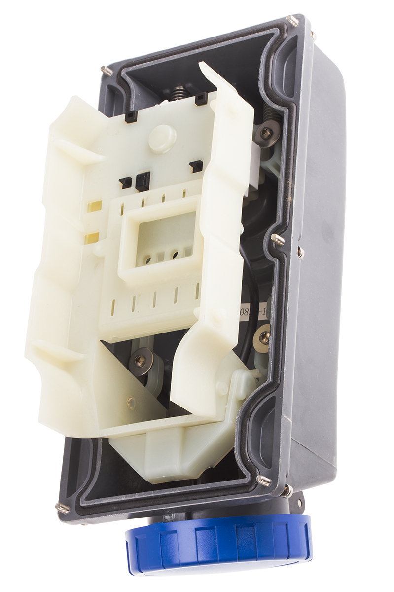 This is IP67 Blue Panel Mount 2P+E Right Angle Industrial Power Socket Rated At 32.0A 230.0 V manufactured by Scame. The manufacturer part number is 402.3283. The product has a current rating of 32a. The product is available in panel mount configuration. It is IP rated with ip67. In addition, female is the available "Gender" of the product. It has a decent blue colour. Moreover, the product has a nominal 230 v voltage rating. While the pole has 2p + e format. It comprises a socket. Whereas, the minimum operating temperature of the product is -25°c. It has a maximum operating temperature of +40°c. It has right angle body orientation.