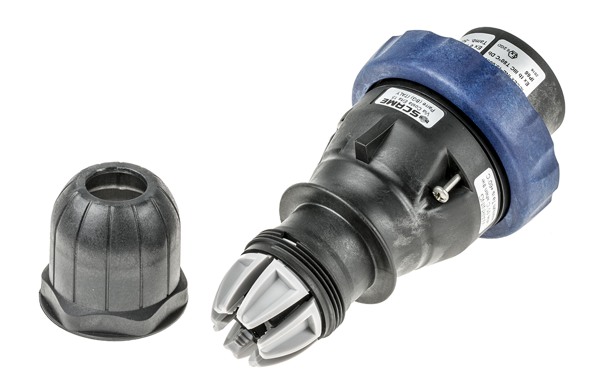 This is IP66 Blue Cable Mount 2P+E Power Connector Plug ATEX IECEx Rated At 32.0A 200 → 250 V manufactured by Scame. The manufacturer part number is 219.3233. The product has a current rating of 32a. The product is available in cable mount configuration. It is IP rated with ip66. In addition, male is the available "Gender" of the product. It has a decent blue colour. Moreover, the product has a nominal 200 → 250 v voltage rating. While the pole has 2p + e format. The product is certified with atex, iecex hazardous area certification. It comprises a plug.
