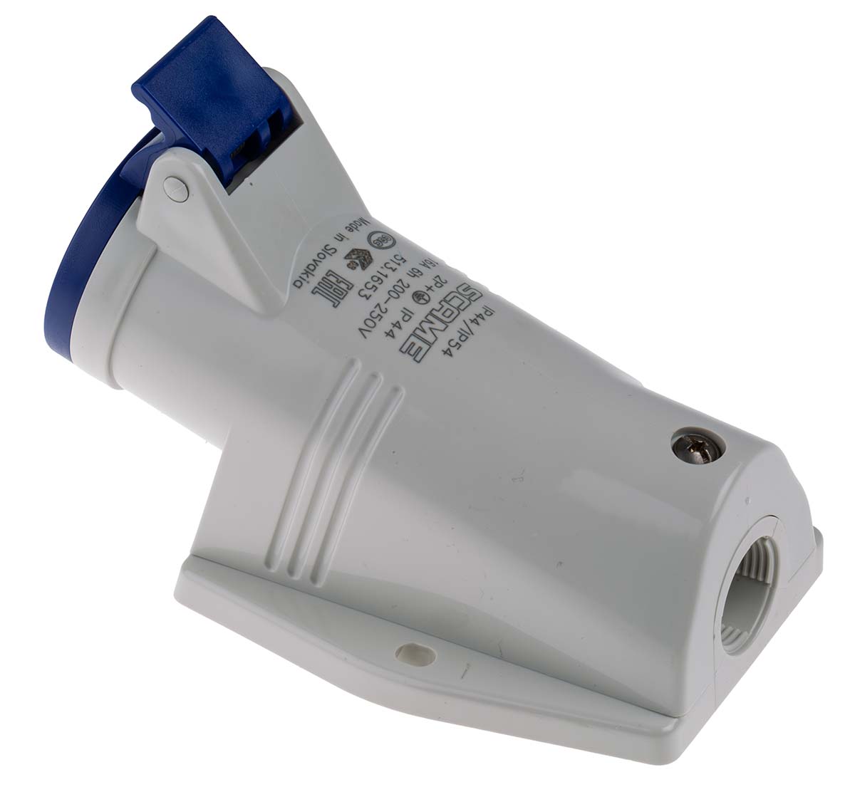 This is IP44 Blue Wall Mount 2P+E Right Angle Industrial Power Socket Rated At 16A 230 V manufactured by Scame. The manufacturer part number is 513.1653. The product has a current rating of 16a. The product is available in wall mount configuration. It is IP rated with ip44. In addition, female is the available "Gender" of the product. It has a decent blue colour. Moreover, the product has a nominal 230 v voltage rating. While the pole has 2p + e format. It comprises a socket. Whereas, the minimum operating temperature of the product is -25°c. It has a maximum operating temperature of +40°c. It has right angle body orientation.