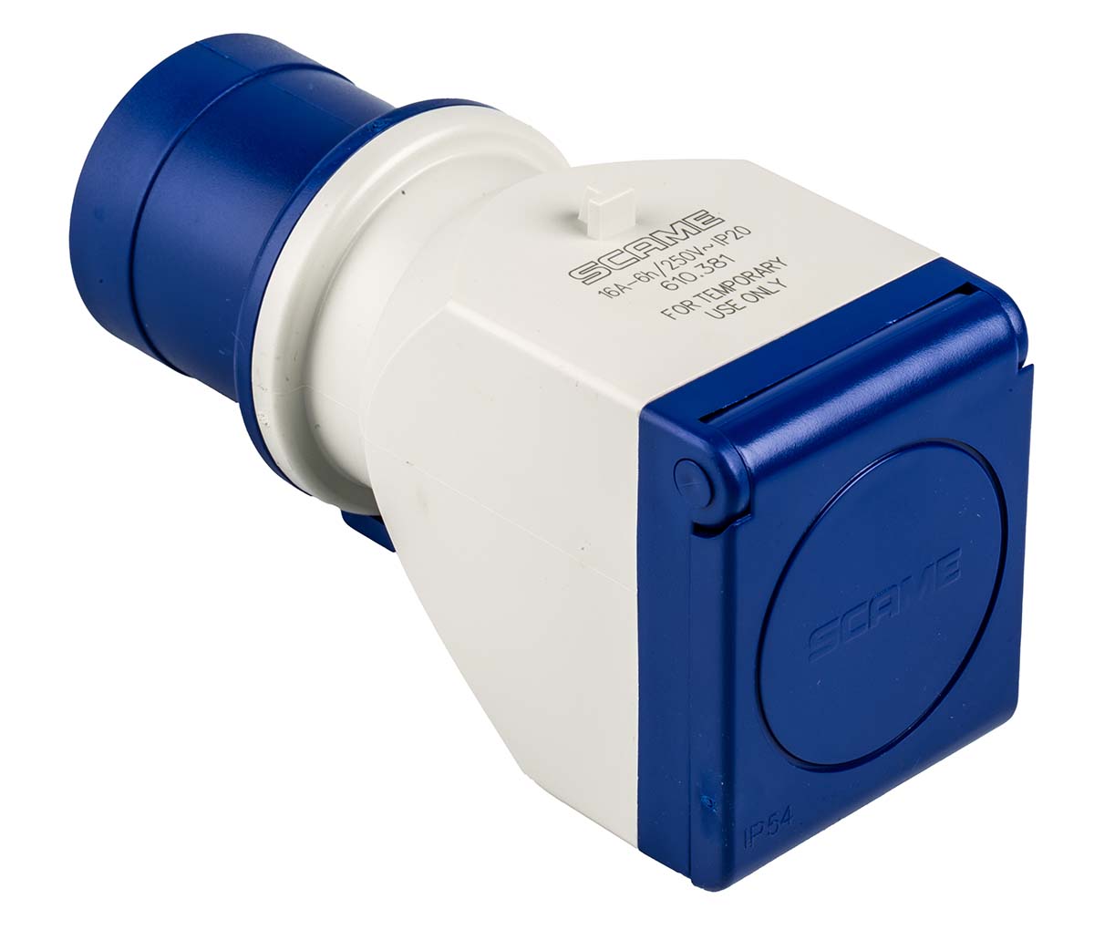 This is IP20 Blue Industrial Power Connector Adapter Rated At 16A 250 V manufactured by Scame. The manufacturer part number is 610.381. The product has a current rating of 16a. It is IP rated with ip20. It has a decent blue colour. Moreover, the product has a nominal 250 v voltage rating. While the pole has 1 x 2p + e, 1 x 2p + e format. It comprises a plug, socket.
