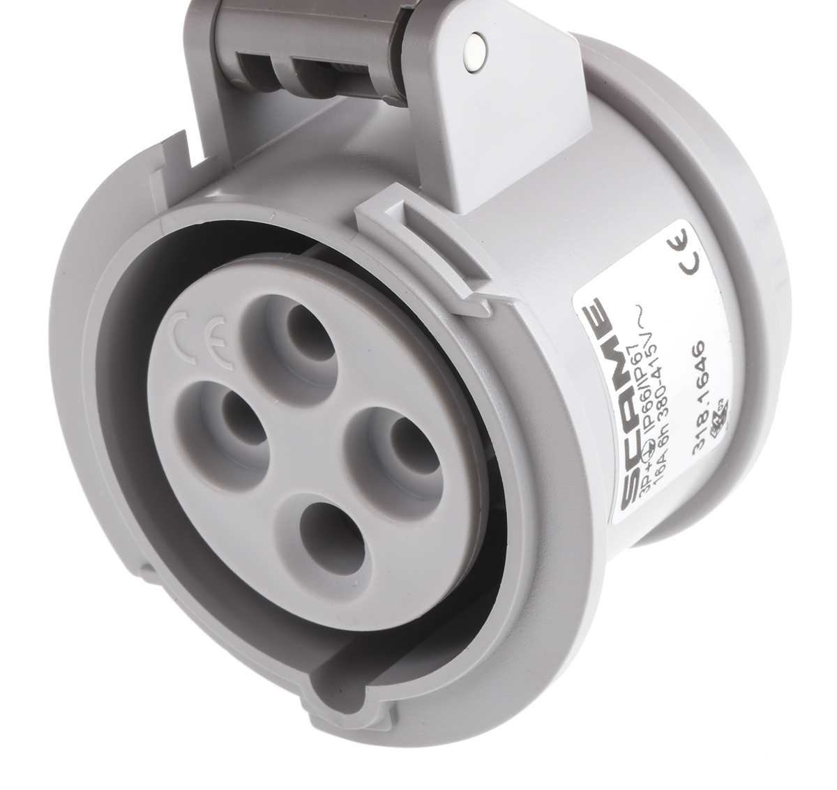 This is IP66 IP67 Red Cable Mount 3P+E Industrial Power Socket Rated At 16A 415 V manufactured by Scame. The manufacturer part number is 318.1646. The product has a current rating of 16a. The product is available in cable mount configuration. It is IP rated with ip66, ip67. In addition, female is the available "Gender" of the product. It has a decent red colour. Moreover, the product has a nominal 415 v voltage rating. While the pole has 3p + e format. It comprises a socket. Whereas, the minimum operating temperature of the product is -25°c. It allows screw termination method. The cross section area of the cable includes 2.5mm². It has a maximum operating temperature of +40°c. It has straight body orientation.