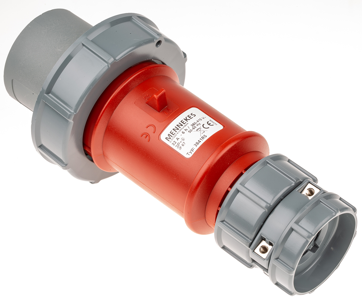This is PowerTOP IP67 Red Cable Mount 4P Industrial Power Plug Rated At 32A 400 V manufactured by MENNEKES. The manufacturer part number is 3841RS. The product has a current rating of 32a. The product is available in cable mount configuration. It is IP rated with ip67. In addition, male is the available "Gender" of the product. It has a decent red colour. Moreover, the product has a nominal 400 v voltage rating. While the pole has 4p format. It allows screw terminal termination method. It comprises a plug. Whereas, the minimum operating temperature of the product is -25°c. The product powertop, is a highly preferred choice for users. The cross section area of the cable includes 2.5 → 6mm². It has a maximum operating temperature of +55°c. It has straight body orientation. It has low voltage no .