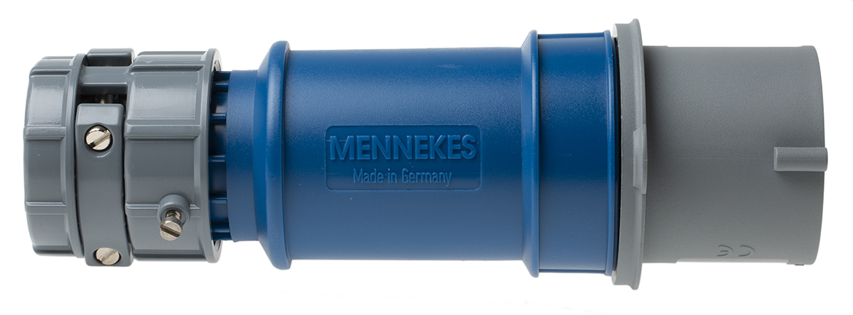 This is PowerTOP IP44 Blue Cable Mount 3P Industrial Power Plug Rated At 32A 230 V manufactured by MENNEKES. The manufacturer part number is 3943RS. The product has a current rating of 32a. The product is available in cable mount configuration. It is IP rated with ip44. In addition, male is the available "Gender" of the product. It has a decent blue colour. Moreover, the product has a nominal 230 v voltage rating. While the pole has 3p format. It allows screw terminal termination method. It comprises a plug. Whereas, the minimum operating temperature of the product is -25°c. The product powertop, is a highly preferred choice for users. The cross section area of the cable includes 2.5 → 6mm². It has a maximum operating temperature of +55°c. It has straight body orientation. It has low voltage no .