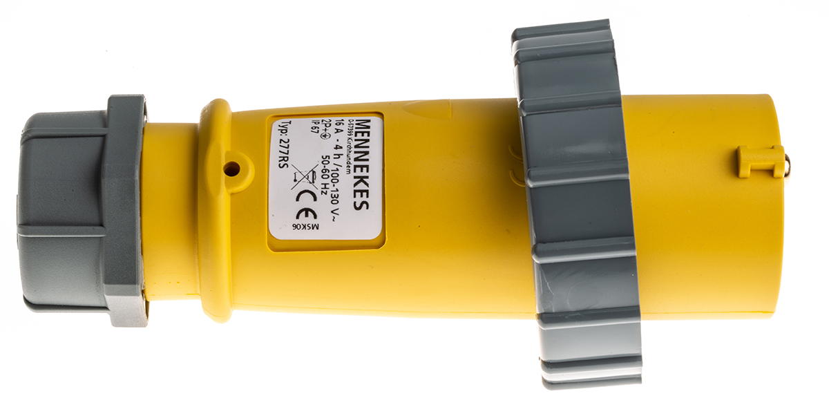 This is AM-TOP IP67 Yellow Cable Mount 3P Industrial Power Plug Rated At 16A 110 V manufactured by MENNEKES. The manufacturer part number is 277RS. The product has a current rating of 16a. The product is available in cable mount configuration. It is IP rated with ip67. In addition, male is the available "Gender" of the product. It has a decent yellow colour. Moreover, the product has a nominal 110 v voltage rating. While the pole has 3p format. It allows screw terminal termination method. It comprises a plug. Whereas, the minimum operating temperature of the product is -25°c. The product am-top, is a highly preferred choice for users. The cross section area of the cable includes 1 → 2.5mm². It has a maximum operating temperature of +55°c. It has straight body orientation. It has low voltage no .