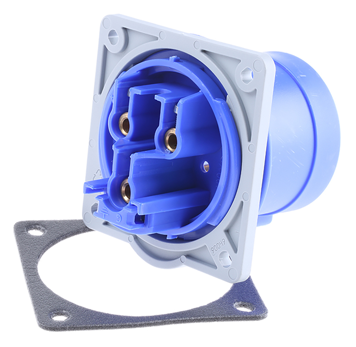 This is Tough & Safe IP44 Blue Panel Mount 2P + E Industrial Power Socket Rated At 32A 230 V manufactured by Amphenol Industrial. The manufacturer part number is 2CMA193434R1000 232BU6. The product has a current rating of 32a. The product is available in panel mount configuration. It is IP rated with ip44. In addition, male is the available "Gender" of the product. It has a decent blue colour. Moreover, the product has a nominal 230 v voltage rating. While the pole has 2p + e format. It allows screw termination method. It comprises a socket. The product tough & safe, is a highly preferred choice for users. It has a maximum operating temperature of +65°c. It has straight body orientation.