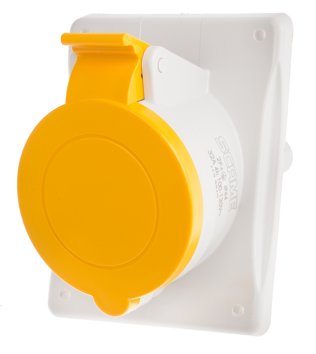 This is IP44 Yellow Panel Mount 2P + E Heavy Duty Power Connector Socket Rated At 32A 110 V manufactured by Scame. The manufacturer part number is 413.3260. The product has a current rating of 32a. The product is available in panel mount configuration. It is IP rated with ip44. In addition, female is the available "Gender" of the product. It has a decent yellow colour. Moreover, the product has a nominal 110 v voltage rating. While the pole has 2p + e format. It comprises a socket. It allows screw termination method. It has straight body orientation.