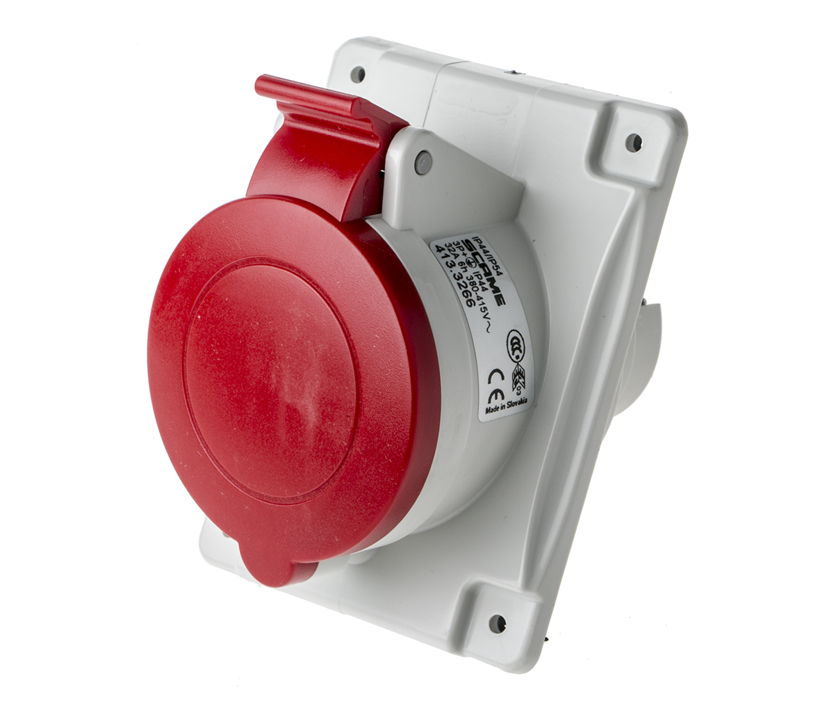 This is IP44 Red Panel Mount 3P + E Heavy Duty Power Connector Socket Rated At 32A 415 V manufactured by Scame. The manufacturer part number is 413.3266. The product has a current rating of 32a. The product is available in panel mount configuration. It is IP rated with ip44. In addition, female is the available "Gender" of the product. It has a decent red colour. Moreover, the product has a nominal 415 v voltage rating. While the pole has 3p + e format. It comprises a socket. It allows screw termination method. It has straight body orientation.
