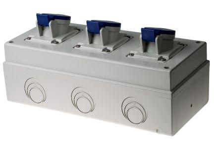 This is 16A Blue 2+E Pole 3 Gang Industrial Power Socket 200 → 250V IP44 manufactured by RS Pro. The manufacturer part number is 410-163. The product has a current rating of 16a. Furthermore, the product is 328mm wide. Moreover, it has a minimum 115mm box depth . It has a decent blue colour. Moreover, the product has a nominal 200 → 250v voltage rating. In addition, the height is 150mm. The product is available in surface mount style. It has a/an none type RCD . The product comes in 156mm depth. 328 x 150 x 156mm is the Dimensions W x H x D of the product . It includes 3 dedicated sockets . Its international protection rating is ip44 . It has equipped with 2+e poles.