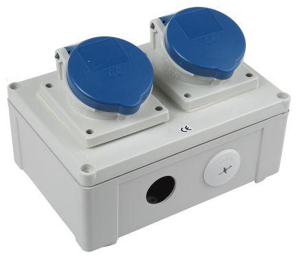 This is 16A Blue 2+E Pole 2 Gang Industrial Power Socket 230V IP44 manufactured by Mennekes. The manufacturer part number is 94866. The product has a current rating of 16a. Moreover, the product has a nominal 230v voltage rating. 170 x 118 x 116mm is the Dimensions W x H x D of the product . It has a decent blue colour. Its international protection rating is ip44 . In addition, the height is 118mm. The product is available in surface mount style. Furthermore, the product is 170mm wide. The product comes in 116mm depth. It includes 2 dedicated sockets . It comprises 2 ways. It has equipped with 2+e poles.