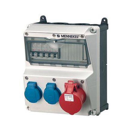 This is 16A Blue Red 5 Pole 3 Gang Combi Unit 230 V 400 V IP44 manufactured by Mennekes. The manufacturer part number is 920005RS. The product has a current rating of 16a. It has an Interlock Socket Included yes Moreover, the product has a nominal 230 v, 400 v voltage rating. 225 x 260 x 209mm is the Dimensions W x H x D of the product . The schuko socket offers profound benefits and is well-designed. Its international protection rating is ip44 . In addition, the height is 260mm. The product is available in wall mount style. Furthermore, the product is 225mm wide. The product comes in 209mm depth. It comprises 3 ways. It includes 3 dedicated sockets . The terminal is a screw type. It has equipped with 5 poles. It has a decent blue, red colour.