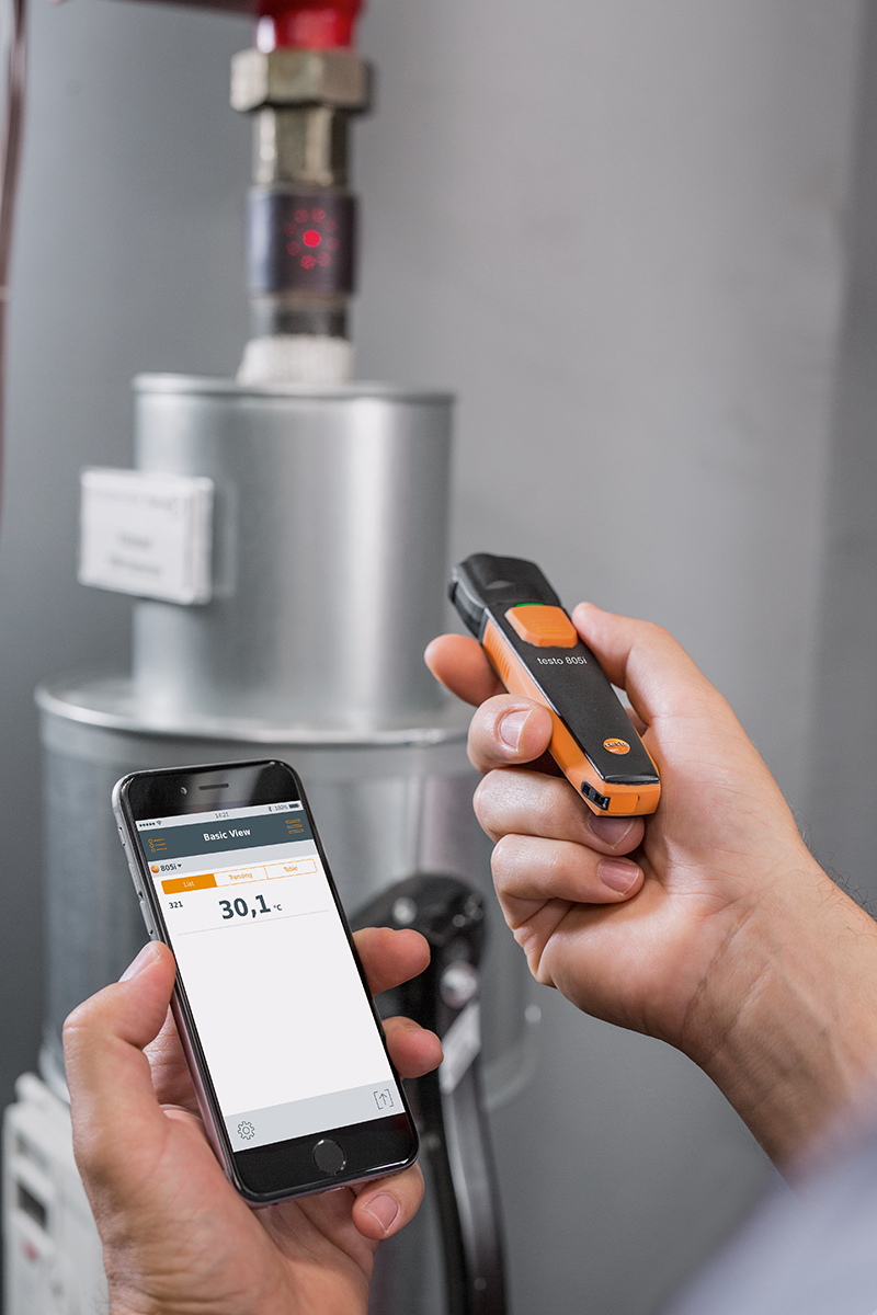 This is 805i Infrared Thermometer manufactured by Testo. The manufacturer part number is 0560 1805. In addition, it is offered with ±2.5 °c best accuracy . Furthermore, it has an absolute -30°c minimum temperature measurement . The given dimensions of the product include 140 x 36 x 25mm. The typical product's weight is 97g. While it has 805i bluetooth of model number. In addition, the height is 25mm. Furthermore, the product is 36mm wide. Its accurate length is 140mm. Additionally, it exhibits centigrade temperature scale . Whereas, the absolute maximum temperature measurement is +250°c . Features 0.1 °c resolution. It has 0.1 → 1, adjustable emissivity . Its distance to spot ratio is 10:1 .