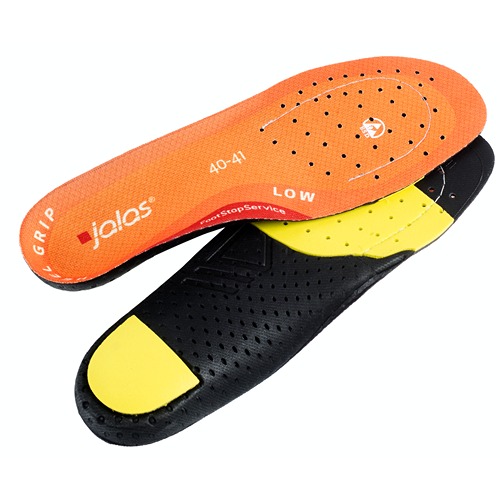 This is Black Orange Insole manufactured by Jalas. The manufacturer part number is 8711L-40-41. It is arch supported yes . It has a decent black, orange colour. The product is made from highly stable and reliable eva, polyester based electro conductive thread, poron xrd, textile. Its material offers a/an anti-static properties .