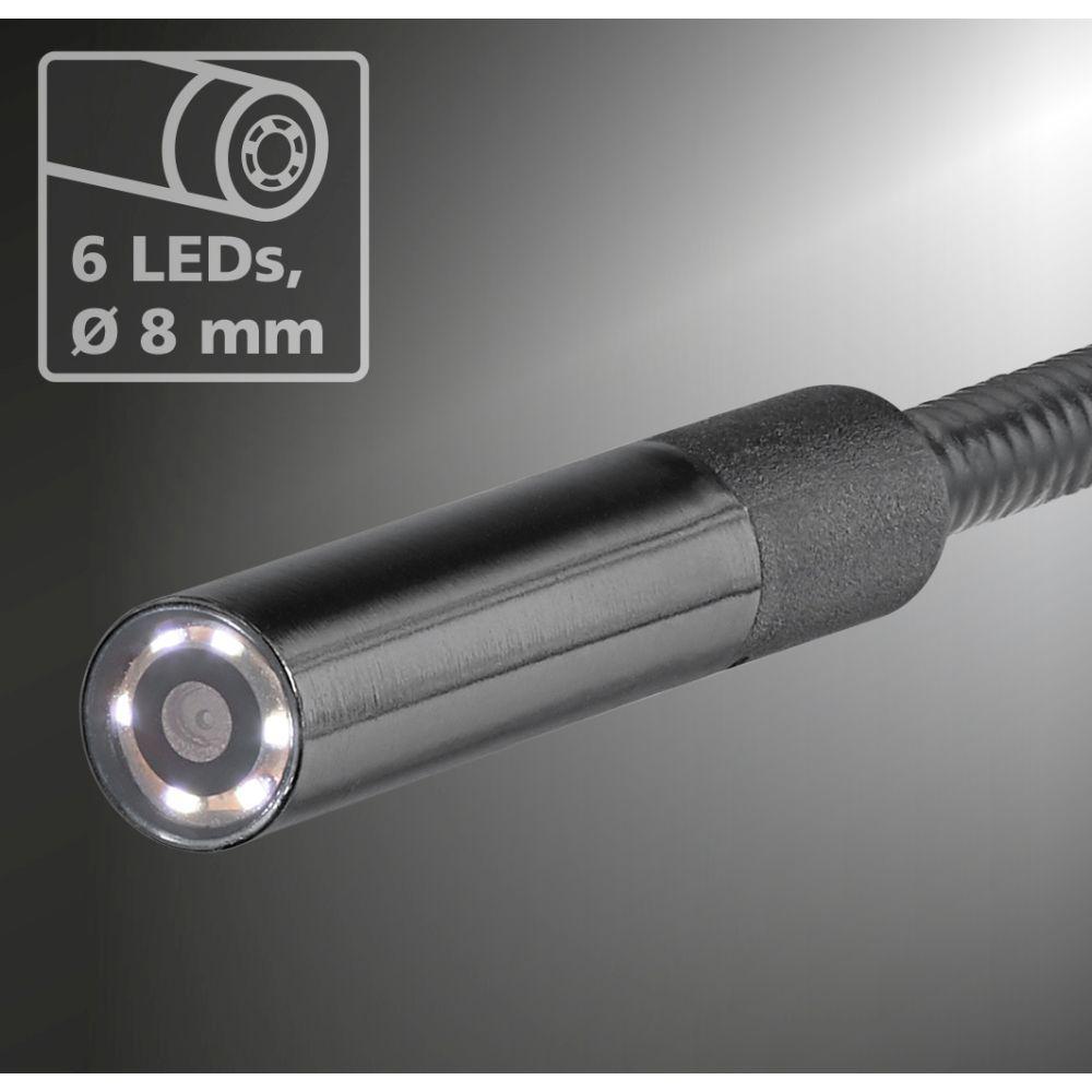 This is 8mm probe Inspection Camera 1m Probe Length LED Illumination manufactured by Laserliner. The manufacturer part number is 082.261A. Its probe diameter is about 8mm . The length of the probe is 1m. It has view filed of 65°. It contains a/an led type illumination .