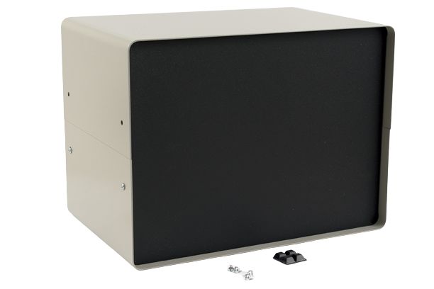 This is Gauge Steel Project Box Grey (Vented Back) Satin Black (Front) 305 x 203 x 229mm manufactured by Hammond. The manufacturer part number is 1401M. The product complies with all safety standards, such as rohs. The typical product's weight is 3.065kg. It is IP rated with ip32. It has a carrying handle included no . The product 1401, is a highly preferred choice for users. It has a decent grey colour. It has a instrument case type case . It is ventilated yes . Its external length includes 305 mm. The product's body is nicely designed from aluminium, steel materials. Features 305 x 203 x 229mm external caliber. While its external height is 229 mm. The product is 203 mm wide.