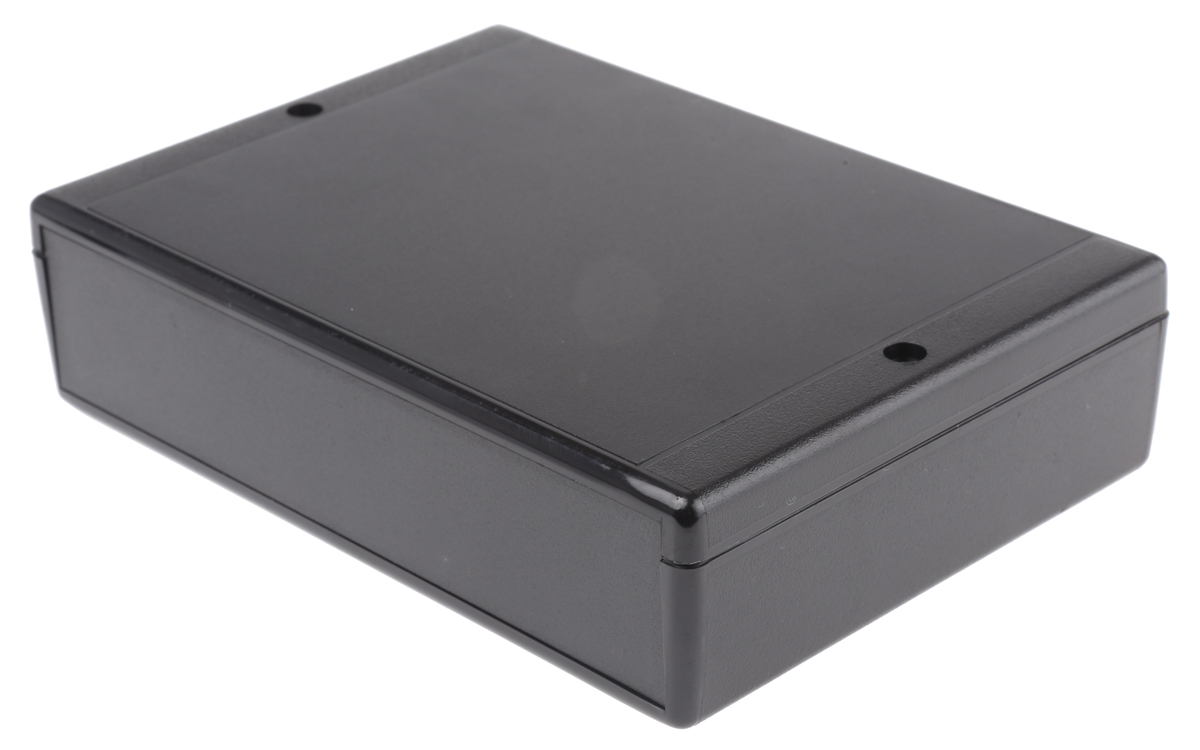 This is ABS Project Box Black 105 x 154 x 38mm manufactured by Pactec. The manufacturer part number is 71894-510-000. Its external length includes 105 mm. The product lh, is a highly preferred choice for users. It has a decent black colour. The product's body is nicely designed from abs materials. Features 105 x 154 x 38mm external caliber. While its external height is 38 mm. The product is 154 mm wide.