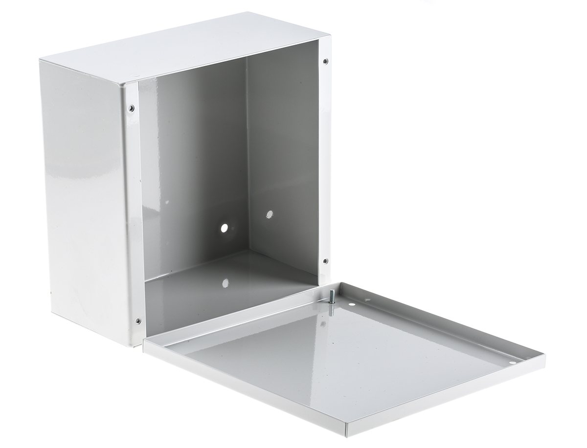 This is Steel Project Box Grey 200 x 200 x 100mm manufactured by RS Pro. The manufacturer part number is 232-197. The product complies with all safety standards, such as rohs. It has a carrying handle included no . It has a decent grey colour. It is ventilated no . Its external length includes 200 mm. The product's body is nicely designed from cold rolled steel materials. Features 200 x 200 x 100mm external caliber. While its external height is 100 mm. The product is 200 mm wide.