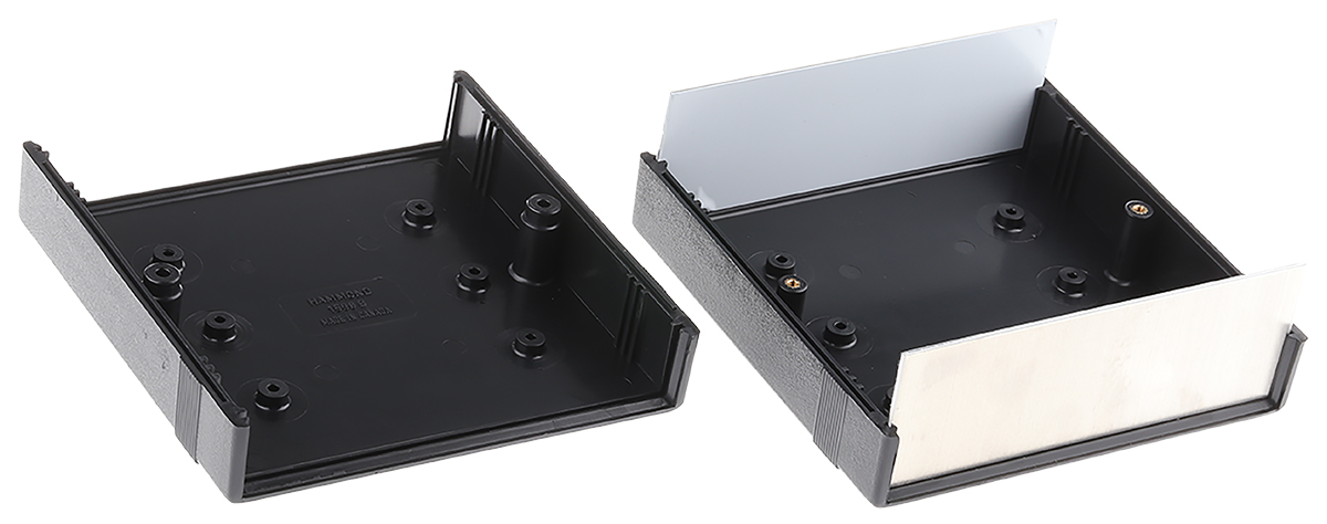 This is ABS Project Box Black 134.3 x 135.2 x 51mm manufactured by Hammond. The manufacturer part number is 1598BBK. The product complies with all safety standards, such as rohs. The typical product's weight is 241g. It is IP rated with ip54. It has a carrying handle included no . The product 1598, is a highly preferred choice for users. It has a decent black colour. It has a instrument case type case . It is ventilated no . Its external length includes 134.3 mm. The product's body is nicely designed from flame retardant abs materials. Features 134.3 x 135.2 x 51mm external caliber. While its external height is 51 mm. The product is 135.2 mm wide.