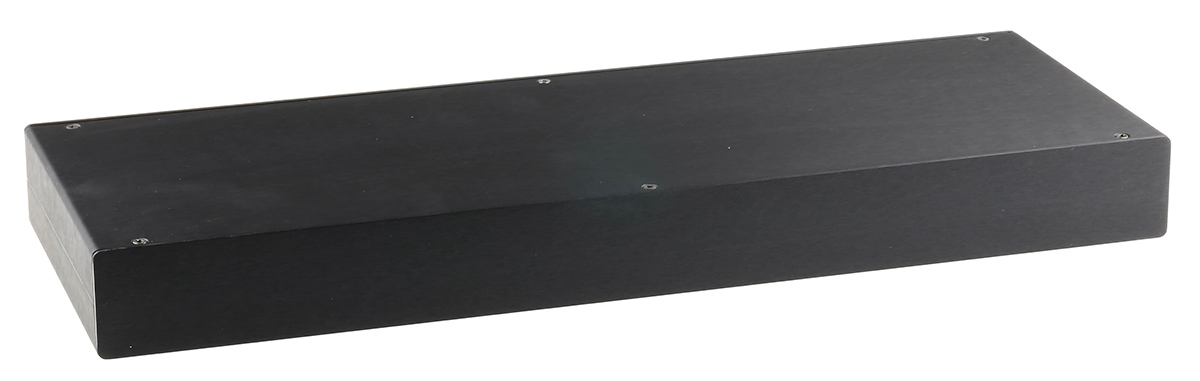 This is Anodised Aluminium Project Box Black 442 x 153 x 45mm manufactured by RS Pro. The manufacturer part number is 226-101. The product complies with all safety standards, such as rohs. It has a carrying handle included no . It has a decent black colour. It is ventilated no . Its external length includes 442 mm. The product's body is nicely designed from anodised aluminium materials. Features 442 x 153 x 45mm external caliber. While its external height is 45 mm. The product is 153 mm wide.